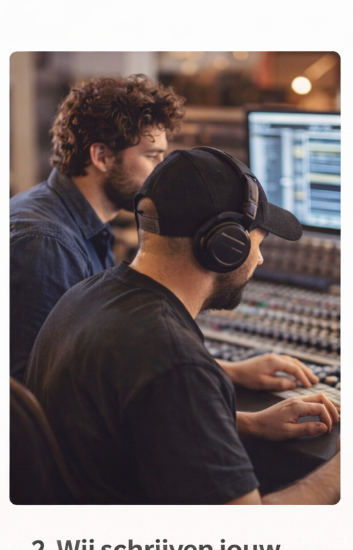 Op basis van jouw antwoorden gaat ons team van songwriters en producers aan de slag en maakt een unieke, gepersonaliseerde track, speciaal voor jou.